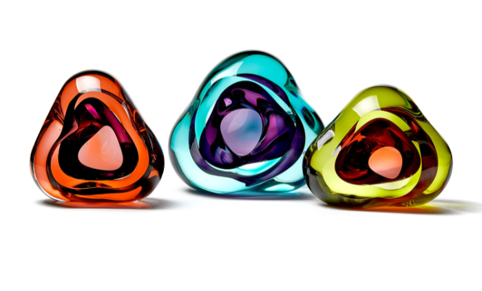 I have always been fascinated by viewers’ perceptions of an unfamiliar object of desire; the different things we all see and the way forms remind us of certain things. Glass is such a stunning instrument to use to investigate the seductive distortion of light, meandering through colours, forms and transparency. I use these artistic elements to create energy and motion in what are simply just objects of beauty, to be looked at and enjoyed.