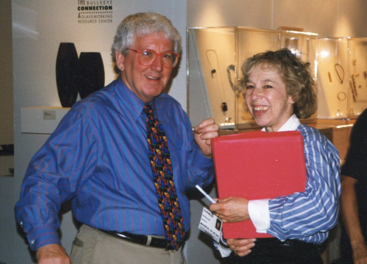 Ellie and Bob Miller crossed the pond to attend British Artists in Glass conferences and made many friends by encouraging young artists to show their work in the States.