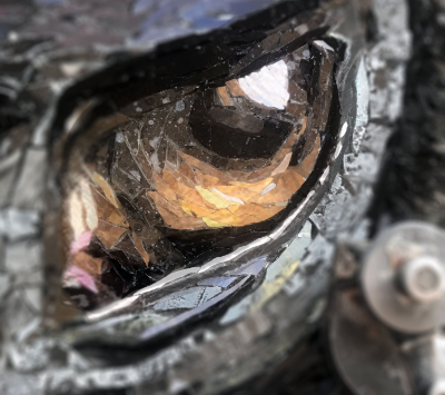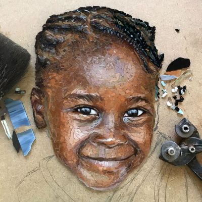 I started out working with ceramic tiles, slowly incorporating more and more stained glass into my artworks over the years, as I began to experiment and create more detailed and realistic work. Initially, I found glass a rigid and often unforgiving medium, but I’ve learnt to love its reflective nature, which changes depending on the lighting and angle of viewing. This reflectivity can bring an added dimension to the artworks, allowing them to continuously change, and helps bring the scenes and subjects to life.