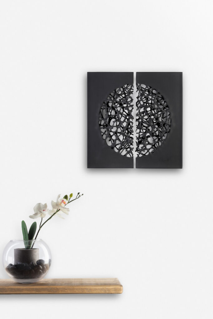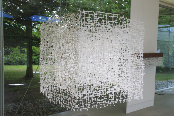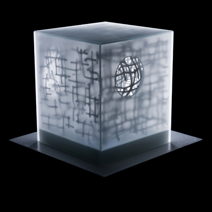 Tracy Nicholls is a British artist working in kiln-formed glass. She currently works from her studio in Surrey using predominantly opaque glass and a simple monochrome colour palette to create her intricate, sculptural pieces. She is fascinated by erosion, wherein solid forms disintegrate over time, becoming ever more delicate and fragile while transforming into lace-like structures.