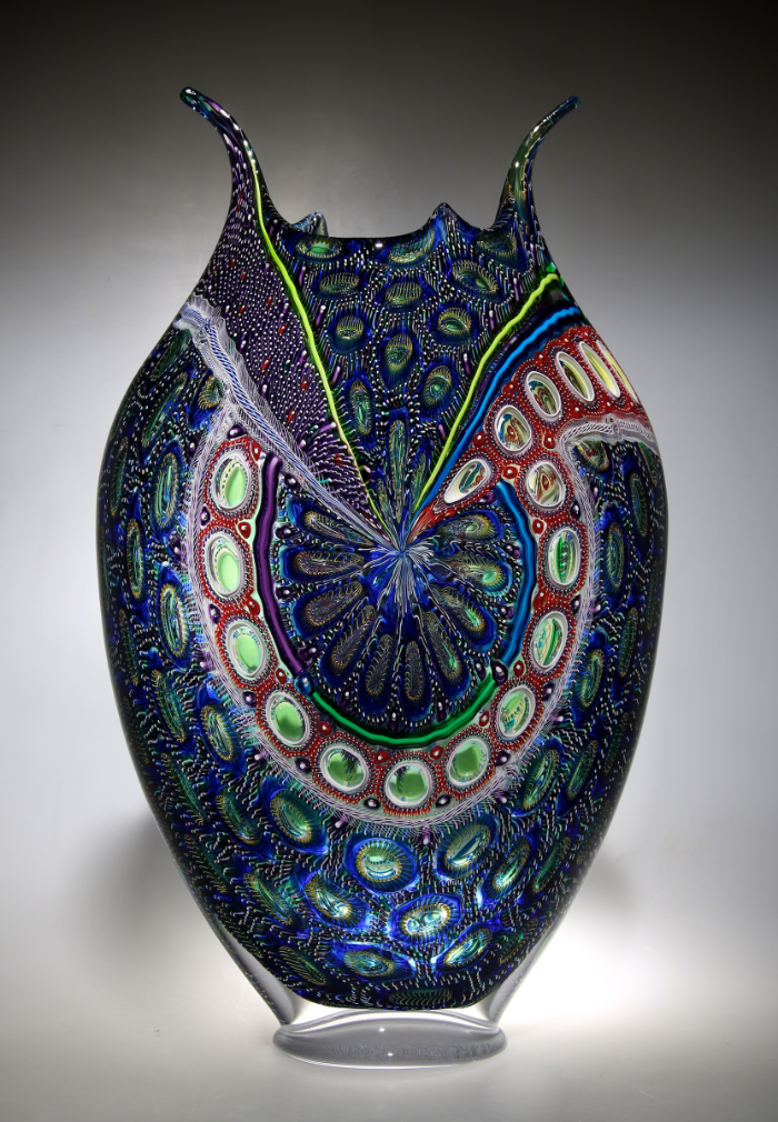 David Patchen is internationally known for his colourful and intricately patterned blown and hot-sculpted glass. His mastery of the murrine and cane techniques and use of vibrant colours results in large work that is detailed, precise and exciting. His work is frequently exhibited in shows and is in many private collections.