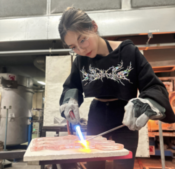 Jiayun Ding is a passionate glass artist and member of CGS, dedicated to pushing the boundaries of traditional glassblowing. Holding a first class honours BA degree from the University of Sunderland, Jiayun’s journey in glass has been enriched by intensive courses at the Corning Museum of Glass, US, where she explored Venetian glassblowing techniques and medieval glass.