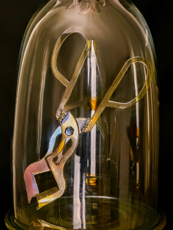 It has to be the diamond shears, particularly the Big Combo shears. They hold significance in my professional art practice, symbolising a milestone in my work and personal style. The glass diamond shears I made are emblematic of my identity as an individual artist, contributing to my recognisable artistic signature.