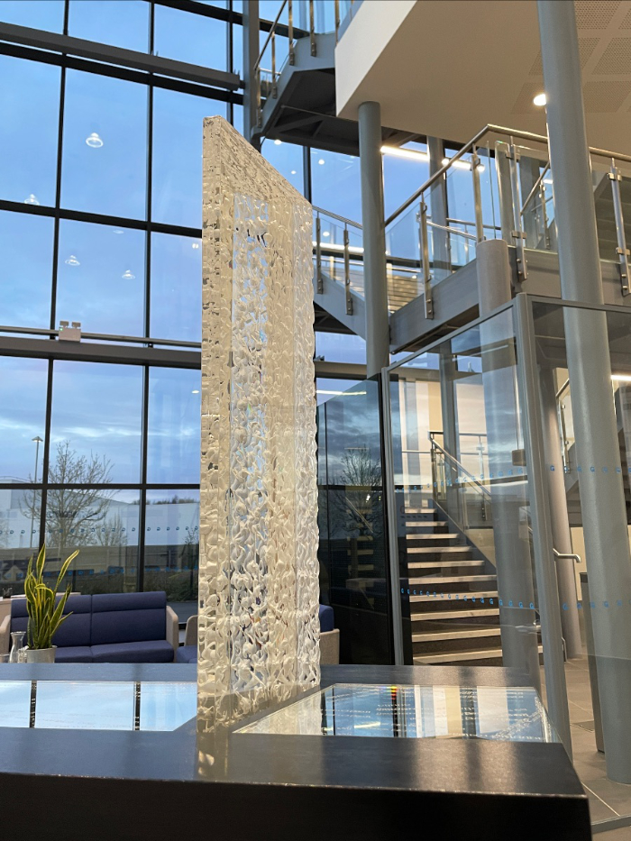 A monumental optical glass, mirror and wood sculpture has gone on display at Glass Futures in St Helens, Merseyside, UK, for the duration of 2024.