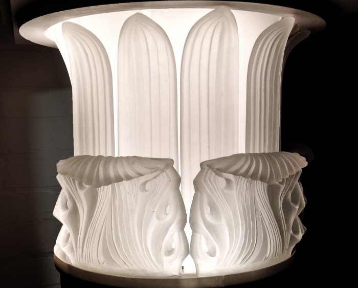 We worked on a project in Highgate, North London, where the brief was to create a series of bespoke, cast lead crystal lights atop Corinthian column capitals to sit around a subterranean swimming pool. They were interesting as they were clad around existing structural columns and needed to be designed in such a way that they could be safely deconstructed to change a lightbulb.