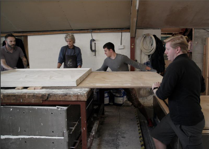 In the past five years we have implemented a significant investment programme in the studio facilities. We built a whole new studio area that expanded our space, part of which was used to house a new, automated sandblasting machine. Before this we only had a hand-held sandblaster. We still use this to achieve very fine, intricate details. However, the automated sandblaster allows us to put a flat, even sandblast across panels, without having to have a skilled technician there. It also allows us to do a gradient sandblast across panels, which is almost impossible to do by hand.