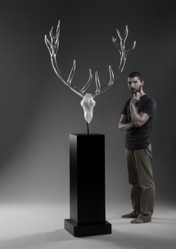 Simone Crestani, born in 1984 near Venice, is an Italian glass artist and designer, based in Vicenza (Veneto). He started to work glass at Massimo’s Lunardon factory when he was 15 and opened his own studio, Atelier Crestani, in 2010. Here, he developed his own ways of working borosilicate glass with the torch, which he terms the Hollow Sculpture technique.