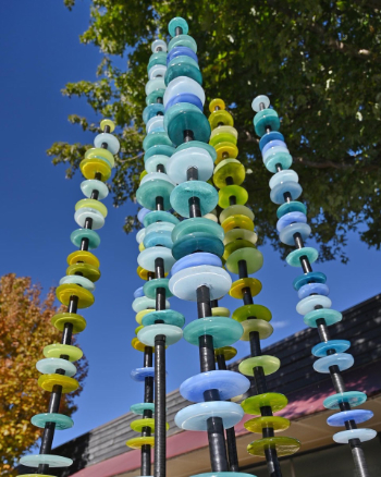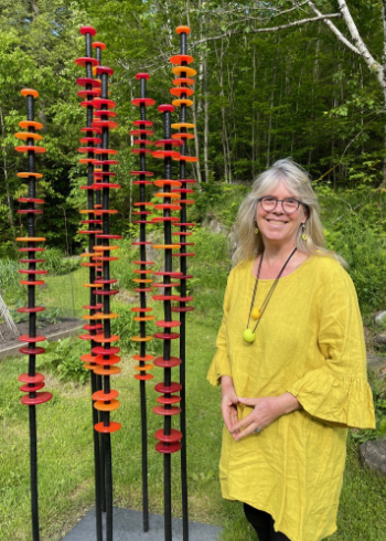 Through the past 30 years as a glass artist, I have explored the idea of garden through my work. The most recent projects continue this exploration, but the focus is now on developing sculptural glass objects to adorn the gardens and outdoor spaces that have been my source of inspiration for so long. We are all constantly surrounded by something. The landscape that surrounds us shapes us and influences us as we function within it. I live in a hard wood forest on the edge of the Canadian Precambrian Shield. The change in this landscape from season to season has inspired me to examine how the glass columns can evoke a new sense of space, by enlarging the groupings of columns to evoke the feeling of forest or grove. I have worked with scale to create a presence; they demand that observers engage with them in a more physical and direct way. Using numerous columns to define a space, I incorporate light through the multiple transparent or opaque glass elements. Drawing on natural and abstracted forms I have created a series of work that is harmonious and compelling through the seasons. Light is the critical element for glass in both indoor and outdoor settings. The shifting movement of the light throughout the day illuminates the beauty of the glass elements, creating moments when it appears that the colour itself sings and that colour is commanding the space. When lit at night, the columns take on a dramatic, jewel-like quality. The illumination of the coloured shafts is reminiscent of coloured lights reflecting off the surface of water at night with a slight ripple. This integration of light and object is something that I have been exploring throughout my work with sculptural forms.