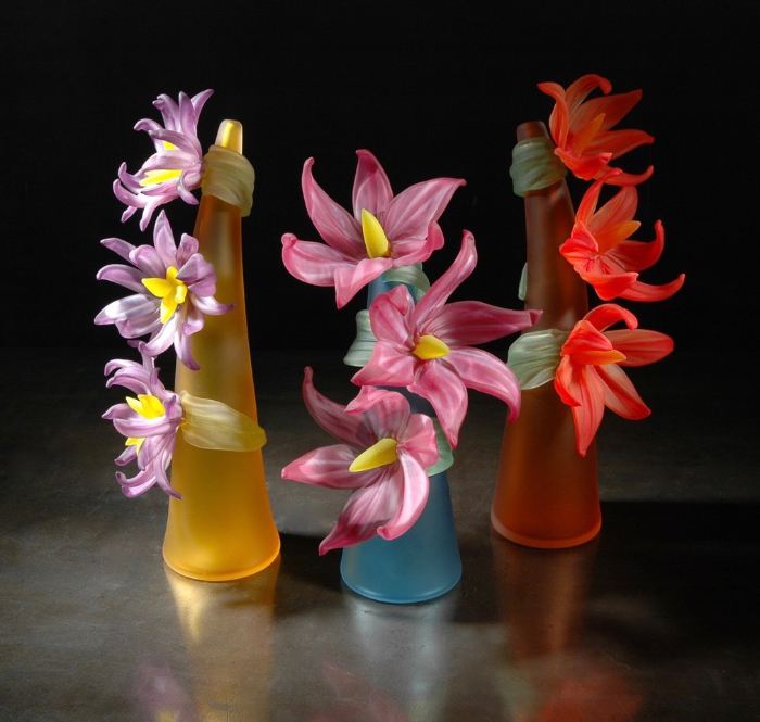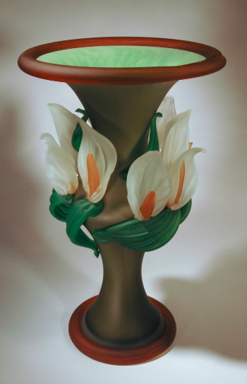 Susan’s towering columns and lively, voluptuous vessels wrapped in vines, leaves and flowers, have been shown in 34 solo exhibitions and numerous invitational and group exhibitions across North America at prestigious venues for contemporary glass. Her work is in public collections at the Corning Museum of Glass, Claridge Collection, Michel-Pierre Grenier Collection, Saskatchewan Arts Board, Winnipeg Art Gallery, USB Bank (Canada), Department of Foreign Affairs, Musee des beaux-arts de Montreal, Quebec, Glazen Huis, Flemish Centre for Contemporary Glass Art, Lommel, Belgium, as well as in private collections.