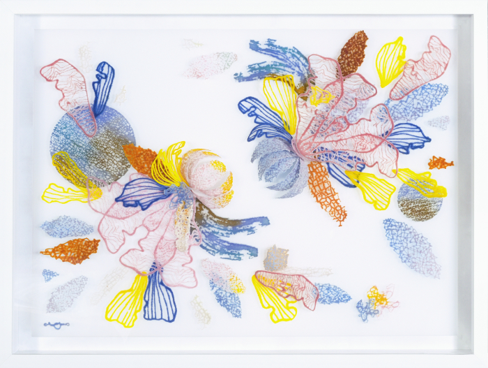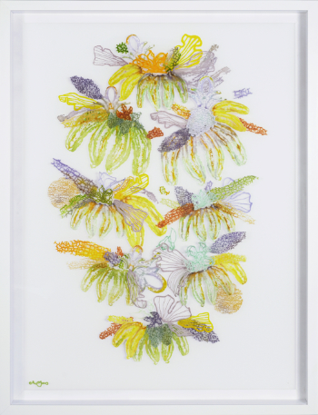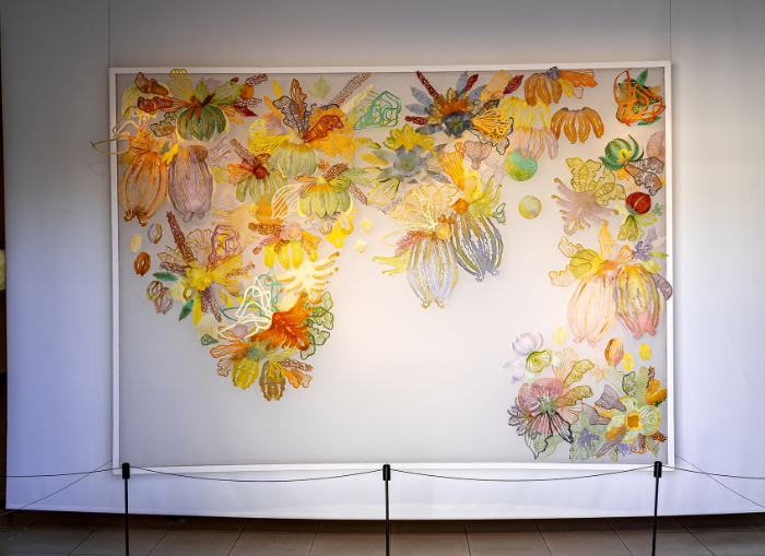 The works in ‘Ripeness’ are created from fragile elements of glass. The fragility of the glass symbolises the delicate balance of health, and how easily health can be broken. The glass pieces are placed into rich assemblages of movement and colour, representing the gateway to the heaven of the inner kingdom, an imaginary wilderness full of desires to taste fruits I have not yet known.
