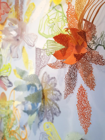 It took a lot of experimenting and testing to see what images were best to print. I also had to work out the precise temperature needed, because the pieces are so delicate. Sometimes the different colours can be over-fused or under-fused. I needed to make them strong enough to be able to play with them when arranging them after heating. I make twice as many as I need, because they break a lot!