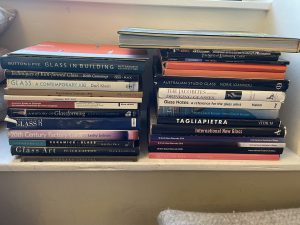 Glass book collection for sale. Includes several exhibition catalogues, rare company books and catalogues and other rare too.