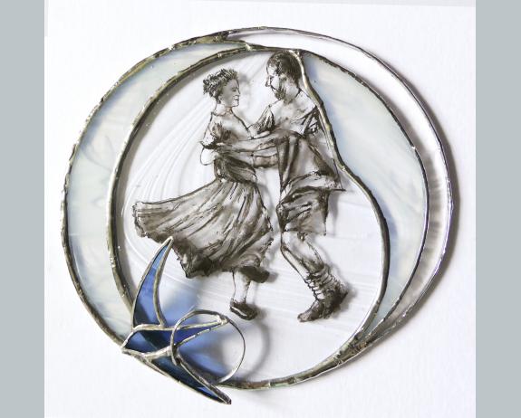 Details: £100.00 Painted and engraved figures using copper foil and solder.