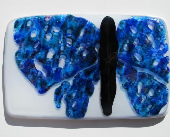 Fused B eye glass / Painted and Fused. 3 layers 1 painted