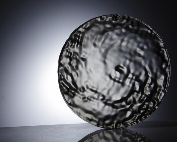 A trace drawing was made from a photograph, scanned in and then digitally tidied. It was then processed through CAD software and converted to 3D texture. Using CNC techniques, the mould was then carved, and glass full fused onto it.
