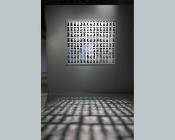 The work, Profile, consists of 120 individual pieces of mirrored glass in the shape of mobile phones, each bears the portrait of someone who is connected to the artist as a Friend on Facebook. Each piece is connected to others by drawn lines which represent the Facebook connections between people.