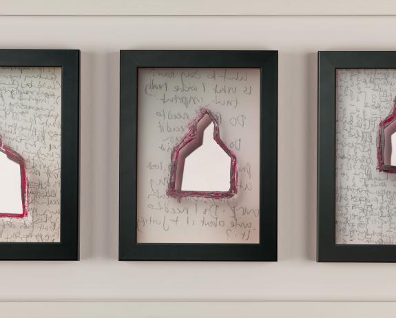 These pieces are a playful examination of romance in the digital age, where handwritten love notes