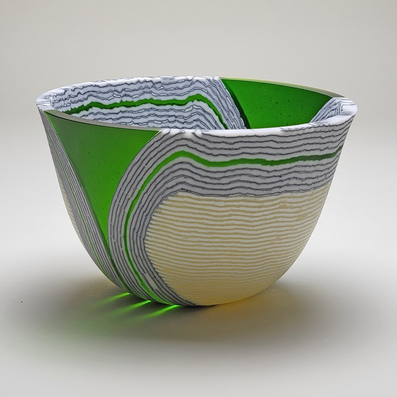 Cheryl Wilson-Smith has lived all her life in Canada’s North, working and raising her family in Red Lake. Beginning as a painter and ceramic artist, she works in glass art exploring the passage of time and her sense of place in the vast world around us. Drawing from her isolated life, residencies around the world and travels she has created a unique image. By manipulating the physical characteristics of powdered glass, she is able to achieve forms that resemble familiar land formations.