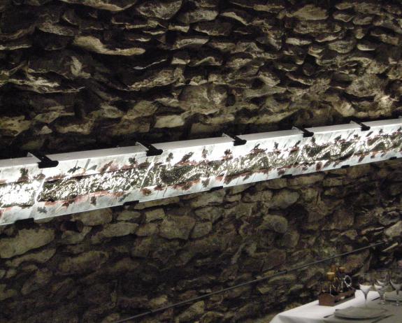 Light and glass installation for the Can Xarina restaurant in Catalonia, Spain