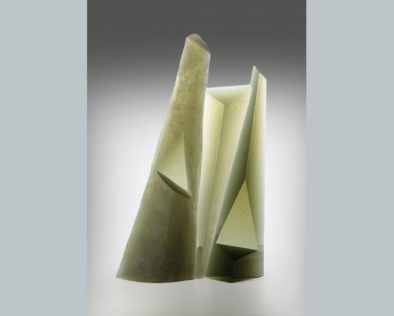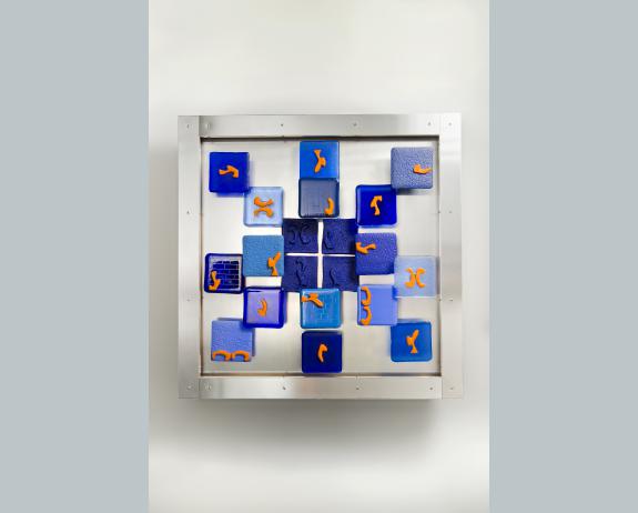 Kiln-formed glass wall panel designed to showcase a relationship between structure, space and shape.