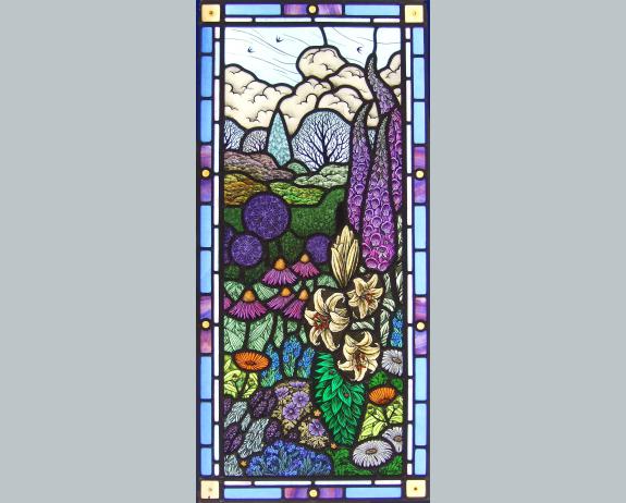 A window commissioned for Horsleygate Hall in Holmesfield, Derbyshire.