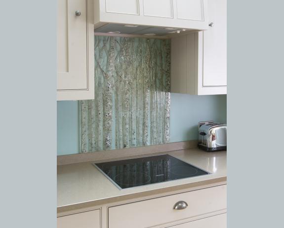 This piece has been incorporated into a kitchen design to create a splash back to a cooker hob.