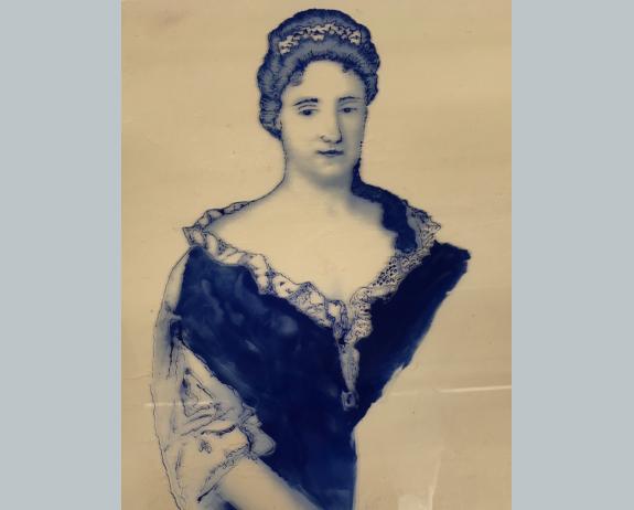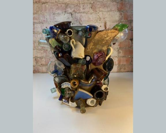 A physical collage made from glass and ceramics found in an old rubbish tip.