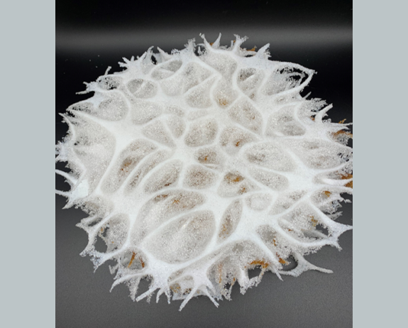 My MA work is inspired by human tumour pathology to convey aspects of the sinister beauty of detrimental transformations. During the early stages of tumour development, dysfunctional cells can infiltrate tissue layers and become the precursors of tumour mass formation. Vasculature aids growth of cells and infiltration.