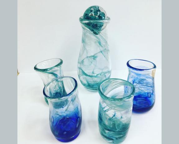 "The story of the kraken is a love story I have created and set it firmly in Norse mythology, though the context of the story I have been able to go into the workshop and using hot glass, and coloured frits I have created a choppy seascape and a drinking vessel fit for Odin himself. "