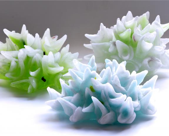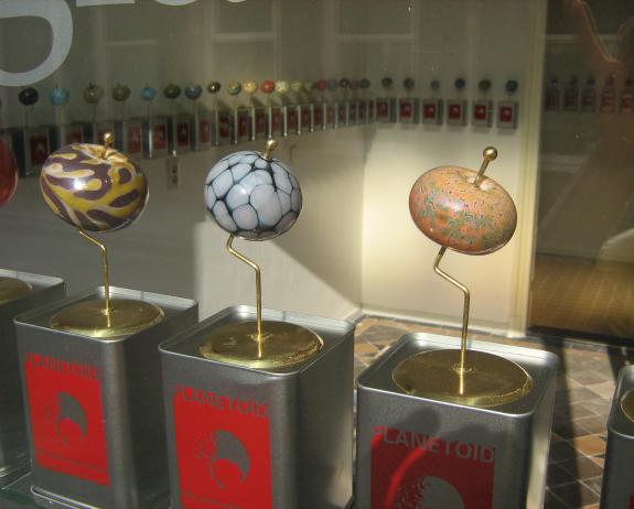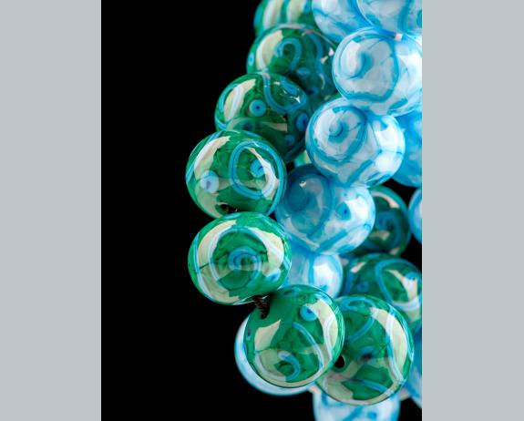 So also these small planetoids, made of flame worked soda lime glass, are as colourful as the originals.