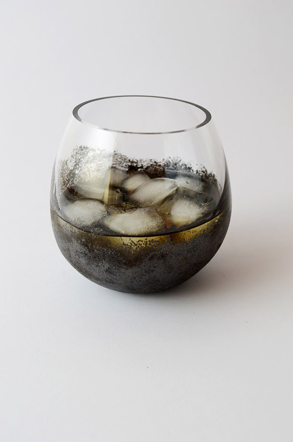 Description: Happiness is a Cast glass , made with gold lusters and decal paper .