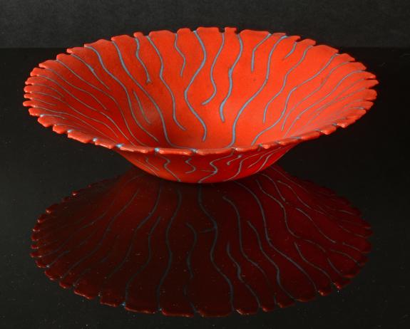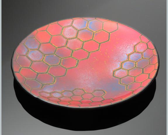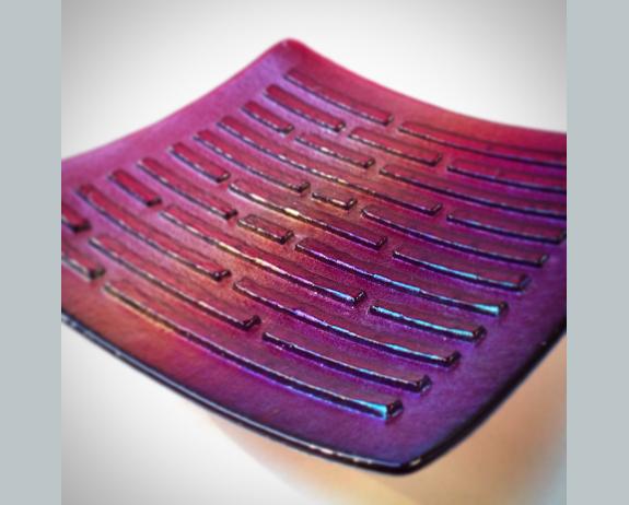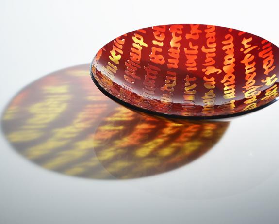 Details: Kiln-formed shallow vessel, 28.5cm x 6.5cm; glass powders and sheet