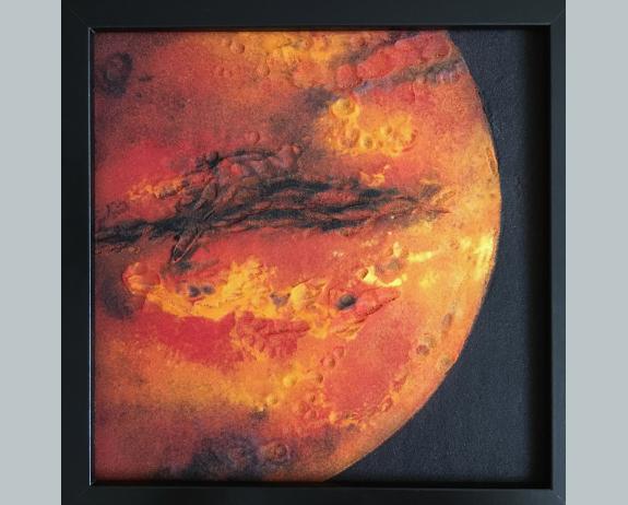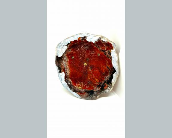 "Geode of fire" is my first completely red piece. Made in November 2018. The colour came out a lovely deep red. Whenever I use metal on the outside of my work. I think it looks very similar to natural geode's. I have also used metal inclusions in this piece to enhance the depth and to gain desired reactions.