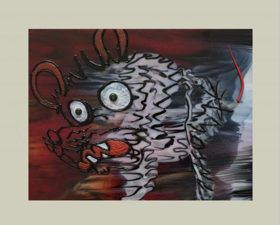 In this work the stylistic and traditional representation of dragon supporting the weight of goblet bowl on its neck is destructurated: the dragon gets down the goblet foot and is crystallized in the act of melting off its manneristic representation and his bowl at the same time .