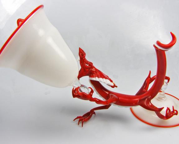 Goblet and dragon were made using Effetre soft glass and a nortel torch. Heat assembled.