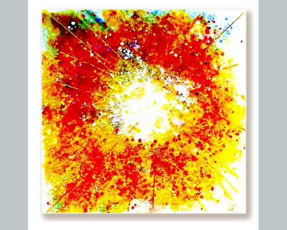 Details: Bullseye glass construction, 55 cm sq. flat panel slumped.