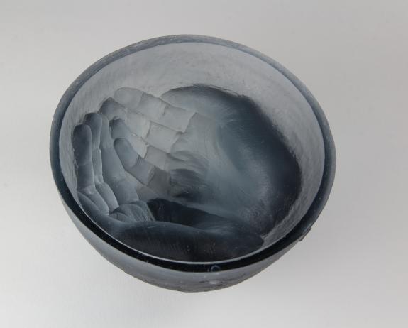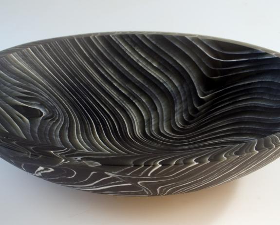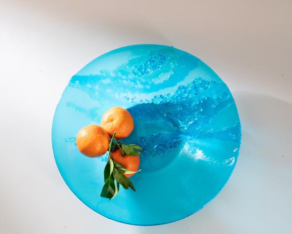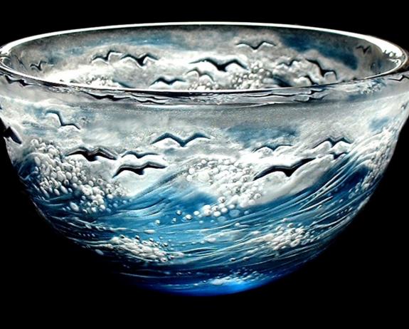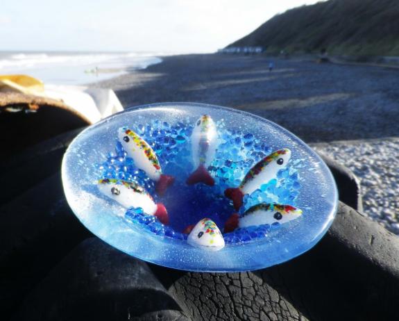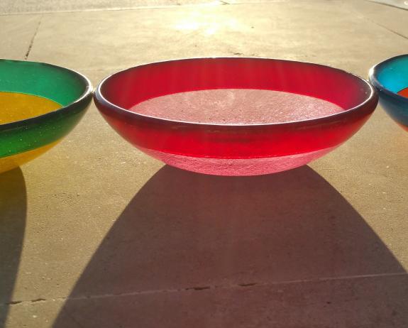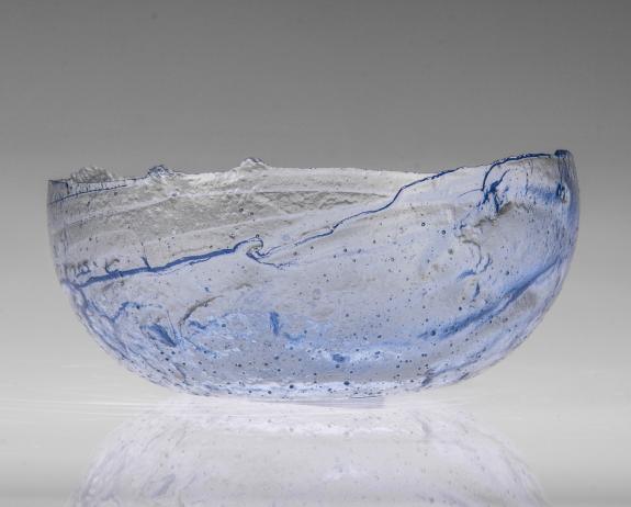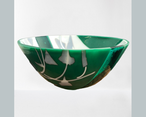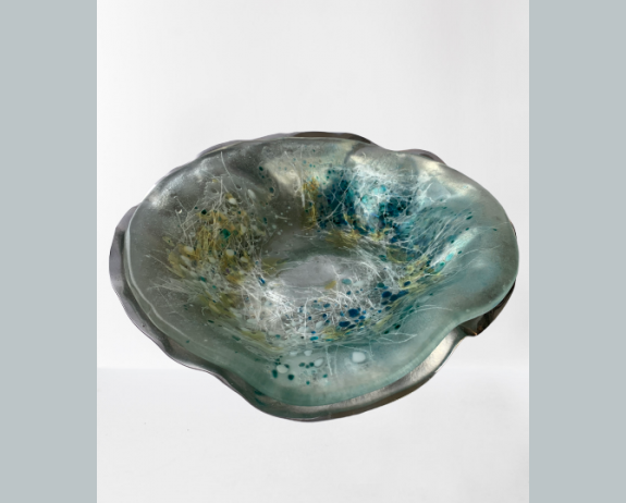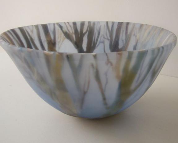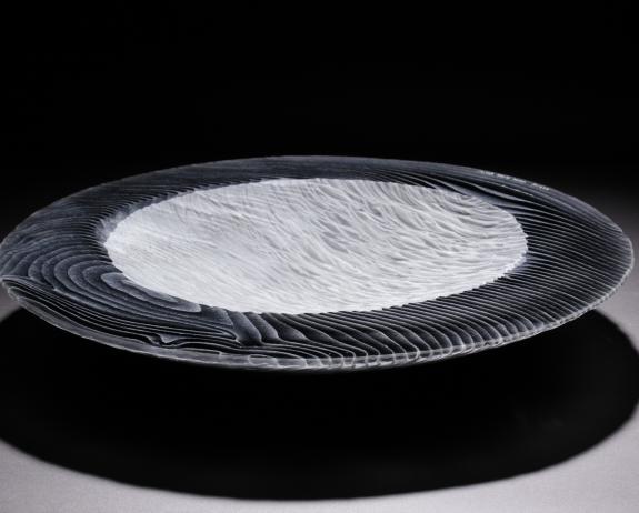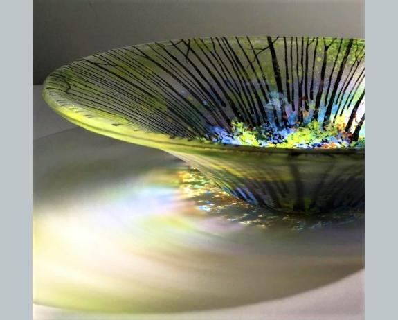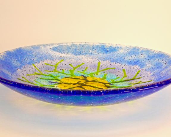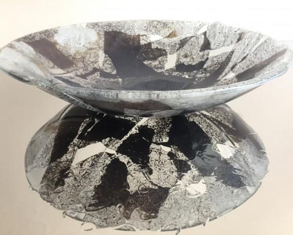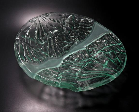Details: Textured fused glass powder and fused glass bowl, 30cm diameter.