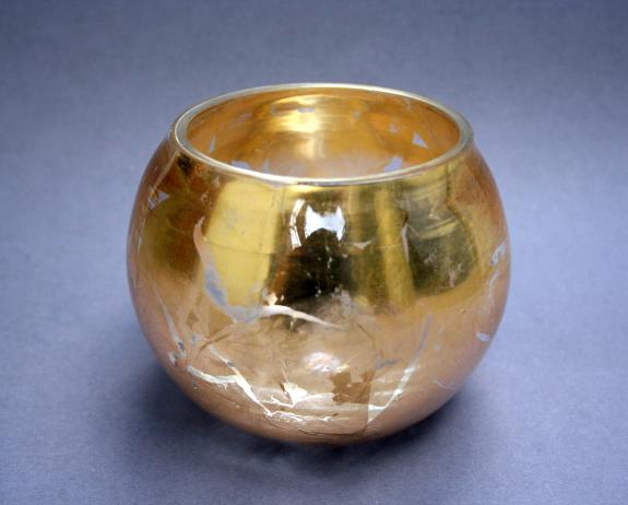 Details: Float glass with inclusions of metal leaf and wire, fused and slumped.