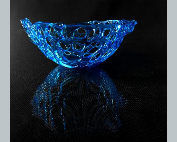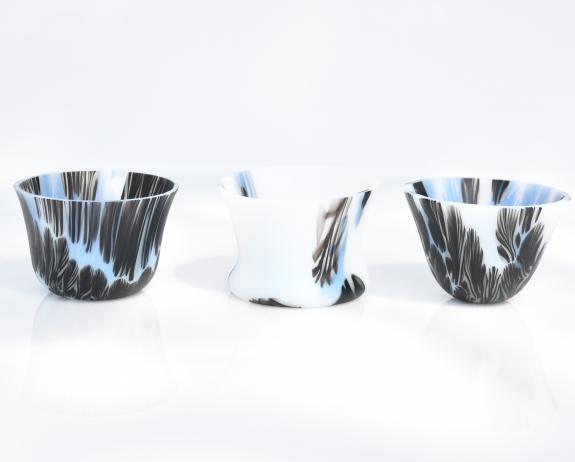 This piece was a study in reactive glass, and dilution, exploring textures and pattern through layering reactive glass