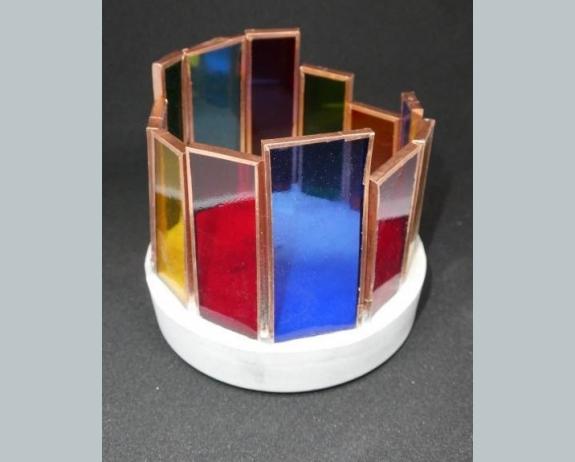 Details: Flameworking and Fused glass, bullseye glass. Dimensions: 32 x 9.5 x 32 cm. Year: 2016