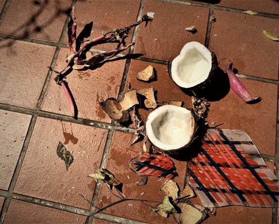 Details: Tesco bought coconut, fused glass plate, rice, decaying leaves